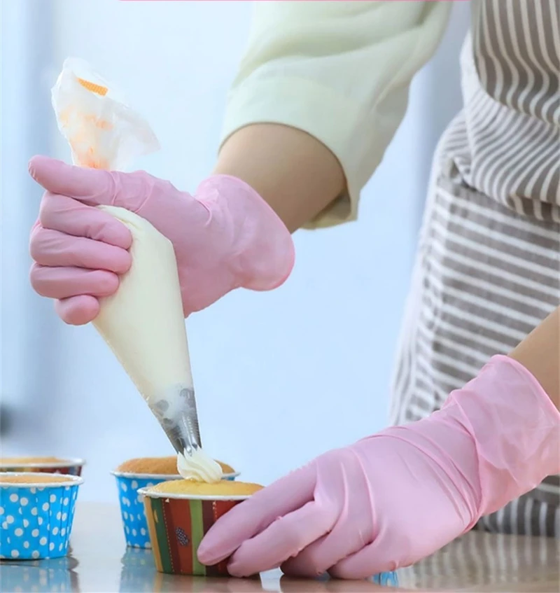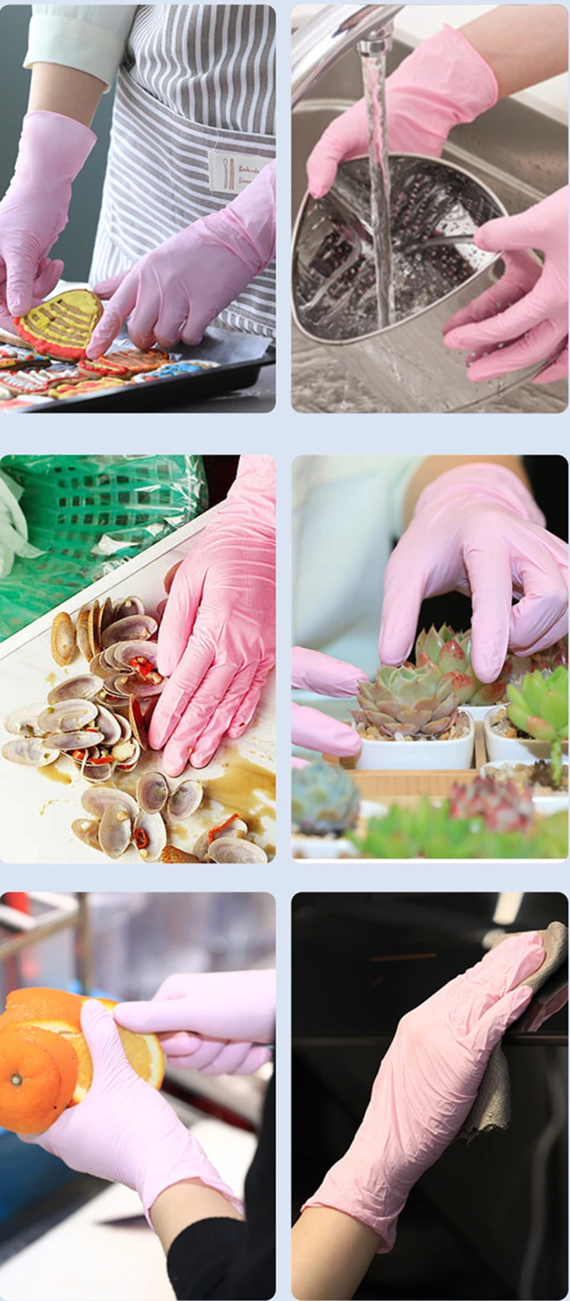 50PCS Pink Nitrile Disposable Gloves Household Gloves for Cleaning Kitchen Cooking Beauty Nail Hair Dye Tattoo Latex Powder Free