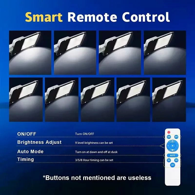 Forget complicated wiring—this solar street light can be quickly installed on poles or walls. It comes with mounting accessories and supports a 5-meter installation height, making it perfect for lighting large areas such as parking lots, gardens, farms, garages, or walkways.